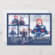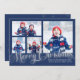 Den här designen har ett god jul-kort, marinblått och silver, med kalligrafi-penselskript, en enkel minimalistisk, typografisk trendig-design med en flerfotokollage, ett modernt, klassiskt, helgdag-kort, med klassi contemporary stil.