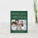 Kort för grönt av elegant med helgdag "God jul" i snyggt vintage, vit typografi, "gott nytt år" och hälsning i modern vit typografi, ditt foto och ditt namn. Anpassa ditt säsong-meddelande till familj och vänner på insidan.