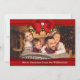 En modern fotojulkortsdesign med din familj som fyller kortet ansikte. Julrött band ramar ditt foto med en romb i bågen och orden nedanför.
