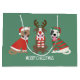 Tur illustration av tre Great dane hundar som är klädda i julstämning.