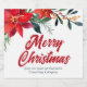 God jul i elegantens röda kursivt skript omgiven av vackra grönt gräs nål och blommor av rött poinsettia. Den här fantastiska blommigten gräns är en chic som rör vid din julfest för företag, som är en gnistrande etikett för vin. Anpassa med ditt företag eller ditt företag namn mellan botaniska vinterdesignen.