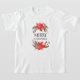 Rustiska och vita helgdag t-shirt med vattenfärg som illustration av poinsettia med vintergröna.