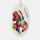 På framsidan av denna knapphändiga keramiska prydnadsföremål för ett barn är en ädel ponny som bär en julhatt och stövlar. Han har en Helgdag med ljus runt nacke. Han står mellan en Julgran-lampa och en grönt och en röd gåva paket. Baksidan av prydnaden har ett God jul-meddelande, ditt barns namn och din namnteckning. Perfekt för en dotter, son, barndotter eller barnson, särskilt en som kärlek hästar!