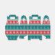 God jul illustration med Julgran och snöflingor dekoration på röd, vit, blå och turkospassad bakgrund