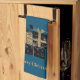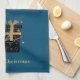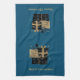 Den här kökshandduken visas i tårblått med en kort-skorsten av svart och guld färgad paket tillsammans med made guld färgad text av God jul. Anpassa det här objektet eller köp som det visas.