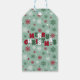 God jul färgstark textdesign med snöflingor dekoration på gröntens bakgrund