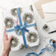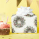 En papper julomslutning har en grön krans med röda bär och prydnadsföremål i snö - roligt för ge gåva från helgdag