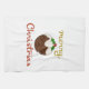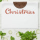 "God jul i faux guld färg och rödskript med illustration av en julpudding med centrum.