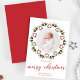 Den här utformningen har ett god jul, ett fotokort med rött och grönt, botaniskt bladgrej, en penselmanstypografi, en enkel kalligrafi, minimalistiska hullbär, med minimala gräs-koner och ett cirkelbildande fotomalls-fotokort