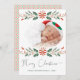 God jul fotokort! Skicka semesterhälsningar till din familj och dina vänner med det här moderna fotokortet och helgdag elegant. Den här designen har röda illustrationer och illustrationer av julhelgen i löv med personlig eller baby. Anpassa kortet ytterligare genom att lägga till år och meddelande. Matchande presenter finns i samlingen https://tinyurl.com/mt45tyw