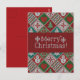 Ursprungligt ovanligt stickat God jul-kort. Röda, grönt, vita och tealfaux-trikade julgranar mönster med Julgranar, snöflingor, hjärtan, snögubbar och zigzag chevron-prydnadsföremål.