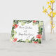 Utformningen har röda hollbär och botaniska löv av grönt med God jul och Gott nytt år i ett modernt penselskript.
