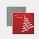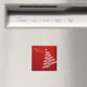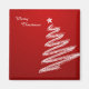 Ett snabbt vitt Julgran mot en röd övertoningsbakgrund med ord "God jul".