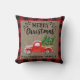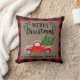 God jul Red Lastbil Buffalo Check/Play Family Namn Dekorativ kudde med söt-skripttypografi. Buffalo-bakgrundsbelysning/kontroll och kopieringsbakgrund.