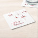 Elegant berött monokulärt julgransprydnadsföremål, "God jul" kvadratisk papper underlägg. Detaljerade, hängande bärröda, monogrambaserade designer för prydnadsföremål. Anpassa med ditt monogram och ditt personliga meddelande om helgdag i bär-rött skript och serif-bokstäver. Designad för att matcha vår berry Red jul Monogram Bauble Collection
