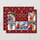Anpassa ditt eget God jul fem fotografikort med helgdag med röd pladbakgrund, guld glittery snöflingor, träd löv och guld typografi.