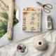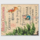 Vintagens hemeramn av Julgran, renar, liten flicka, placering i frimärke och jultext från vintage annons.