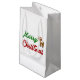 Gift-säckar med God jul i 3D-grönt och röd text och en renare. Mjuksäck finns i många storlekar.