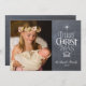 Vi säger "God jul hela tiden, men glömmer ofta ursprung i ord. Det här kortet har en originalskrift som i sin unika utformning visar julsagan, helt enkelt och elegant i den moderata kritan som ser ut som höger på en kritbakgrund. Kortets baksida har även en schalkboard med aktivitetscen. Lägg till ditt eget foto och visa din CHRISTmas-anda för familj och vänner.