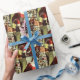 Vintage illustrerar julbilden med helgdag som visar en glad Jultomten som levererar Julklapp under Julgran på julen Kväll.