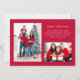 Detta enkla och stilrena julkort med flera foton säger "God Jul" med vit, modern typografi på en festlig röd bakgrund, med en fem-fotogalleria på framsidan av kortet. Baksidan innehåller ytterligare två foton, plus en plats för att lägga till ditt eget personliga meddelande.