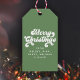 Roligt vintage typography helgdag gift märkre som läser GOD JUL och dina egna namn på grönt. Polka punkt mönster på baksidan.
