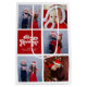 Utrymme för 5 av dina favoritfoton på den här roligten, helgdag-presentväska för återanvändning som läser GOD JUL och ditt anpassningsbar-meddelande och namn på rött från godis i rand.