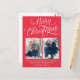 elegant god jul roligt skript 2 foton röd och vit helgdag vykort