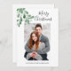 Detta enkla julkort är dekorerat med vattenfärgsmistletoe löv och bär. Anpassade enkelt med ditt namn och din bild. Ursprunglig vattenfärg © Michele Davies.
