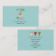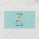 En visitkortsmall med en söt illustration av en rosa flamingo i en röd tomthatt bredvid en grönt handflatan träd på en massa gult sand. Ett finare-kort julgran står bredvid texten God jul i rosan färg, skriven med ett finare handskrivet teckensnitt. Bakgrund till Pastel grönt.