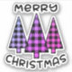 Den här helgdagarna har tre Julgranar med lila och rosa toner med ett övertäckt mönster och den moderna texten "God jul" i populär typografi. #christmas #helgdagar #säsong #festive #christmastrees #träd #modern #plaid #mönster #roligt #rosa #lila #trendig #svart #coola #mode #stil #snyggt #party # # #klistermärken # # #hantverksföretag # #partyanslag #hantverksföretag #klingning