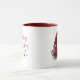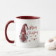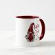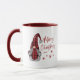 Rustic land stil helgdag kaffe mugg med "God jul" och året med snyggtens röda kalligrafi. Den här unika designen (på båda sidor) har en dam-gnom i sin röda buffelapparat som är utrustad med hatt och som accentueras av snöflingstjärnor.