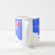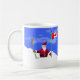 Kaffe mugg med min ursprungliga utformning av Jultomten våtdjup i snö, som håller ett snö-skovel med den kanadensiska Flagga bredvid honom och texten "God jul!"