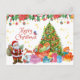 God jul Santa med presenter och Julgran Helg Vykort