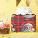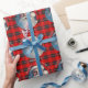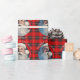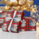 God jul Santa Festive Red Tartan Play Winter Helgdag Wrapping Papper Gift Wrap har Jultomten med sprinkles av snö med texten "God jul" med personlig namn nedanför på röd tjärbakgrund. Perfekt till julklapp för helgdag för familj och vänner. Designad av © Evco Helgdagars www.zazzle.com/store/evcoholidays