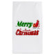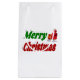Gift-säckar med God jul i 3D-grönt och röd text med Jultomten-sleigh. Mjuksäck finns i många storlekar.