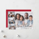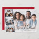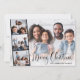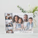 Modern platt helgdag-kort med överlagrade bilder med tre mindre kvadratiska bilder, "God jul" i ett skript för chic och ditt namn i enkel typografi.