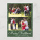 Skicka ut det här God jul-Grönten Julgran Gift Snowflake Hälsning-vykortet med 4 av dina favoritfoton. En modern, enkel manustypografi med grönt julgran, gåvor och snöflingor i mönster. <i>Fotografi © Storytree Studios, Stanford, CA</i>