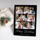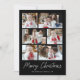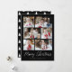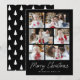 Modern helgdag-kort med 6 av dina foton ordnade i en samlingslayout. "God jul" visas i ett handskrivet, vitt skript med din familj namn och året som visas nedan i svart bakgrund. Flerfotokortet återgår till visning ett svartvitt Julgran mönster.