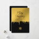En vacker modern julkortsdesign som kan anpassas med din text. I designen visas guld som droppar in i en modern svart bakgrund med en guld-julstjärna. Skriptteckensnitt som används för orden "God jul".