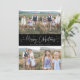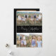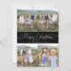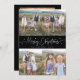 Elegant och modernt helgdag-kort med en manusext som säger "God jul" med stjärnor och 4 bilder. Lägg till ytterligare ett foto på baksidan tillsammans med ditt meddelande. Bakgrunden är svart.