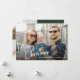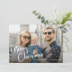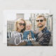 Skicka Season Hälsning med det här Modern Script Lettering Photo jul-Helgdag kort. Utformningen har en valfri bild med en mörk som täcker över grund med den vita texten God jul och Gott nytt år, familj namn och år. På motsatt sida kan du lägga till ett andra foto, anpassa meddelandet och namn. Den festliga gröntens bakgrund kan ändras till vilken färg som helst.