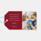 Modern skript Lettering Photo Jul Helgdag Gift-Märkre. Utformningen har en valfri bild med en mörk som täcker över grund med den vita texten God jul, och Gott nytt år och namn. På motsatt sida kan du lägga till ett andra foto, anpassa meddelandet och namn. Den festive Red-bakgrunden kan ändras till vilken färg som helst.