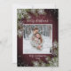 Baserat på min bästsäljande Vinterbröllopssviten har det här varma, mysiga burgunistiska träfotojulkortet ditt favoritfoto från bröllop och dekoreras med silver glitter snöflingor och vattenfärgen gräs grenar, och en burgundisk och svart buffel plaid struktur. Anpassa med ditt foto, namn och år. Kontakta designern för matchande produkter, eller designändringar, och visa Helgdag Suite här: https://www.zazzle.com/collections/rustic_burgundy_silver_winter_plaid_wood_christmas-119954909896873769 Copyright Anastasia Surridge for Elegant Inbjudan, alla höger reserverade.