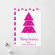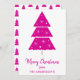 Det här platta helgdag har ett modernt och sött Julgran med snöflingor och snö. Shock rosa-skript God jul typografi på vit bakgrund. Baksidan har shock rosa Julgran med snöflingor mönster.