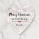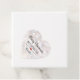 Eleganten "God jul och Gott nytt år" hjärtformade favärde med ett svart teckensnitt på en vit bakgrund som är märkt med ett sött rött hjärta. Anpassa text.