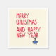 God jul Simple Modern Typography jul Pappra Party Napkins har texten "God jul och Gott nytt år" i modern röd manustypografi på en gräddbakgrund som accentueras med en enkel dekoration. Perfekt till jul party och firande. Designad av Evco Helgdagars www.zazzle.com/store/evcoholidays