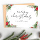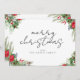 God jul helgdag-kort med minimalistisk manustypografi och vintern fessionsblad.