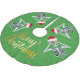 I träd har vi ring av leende skelett med röda tomthattar som håller blanka dekorationer ända fram till ögon med texten God jul i guld på grönt med faux guld-gnistor.