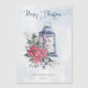 Den snygga vattenfärgen stil modern "God jul" hälsning i anpassningsbar-blått kalligrafiskript grafik, konstnärligt ljus, sprejning av poinsettias, grön och rustik på blekens blå vattenfärg tvättar bakgrund med redigerbar text fält.